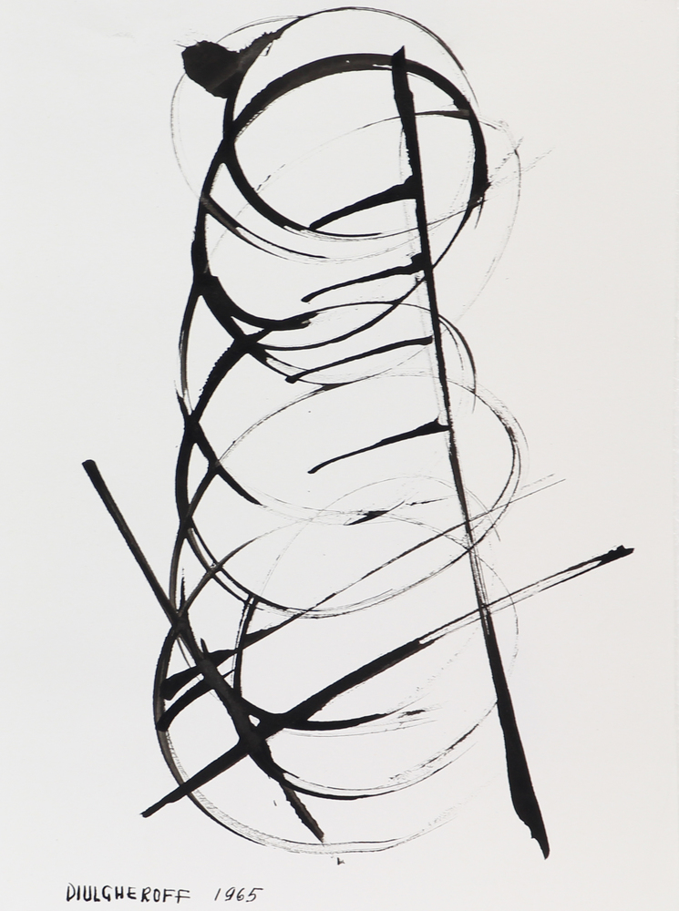 Nicolaj Diulgheroff, Senza titolo, 1965, china su carta, cm. 30x21,5, firmata...