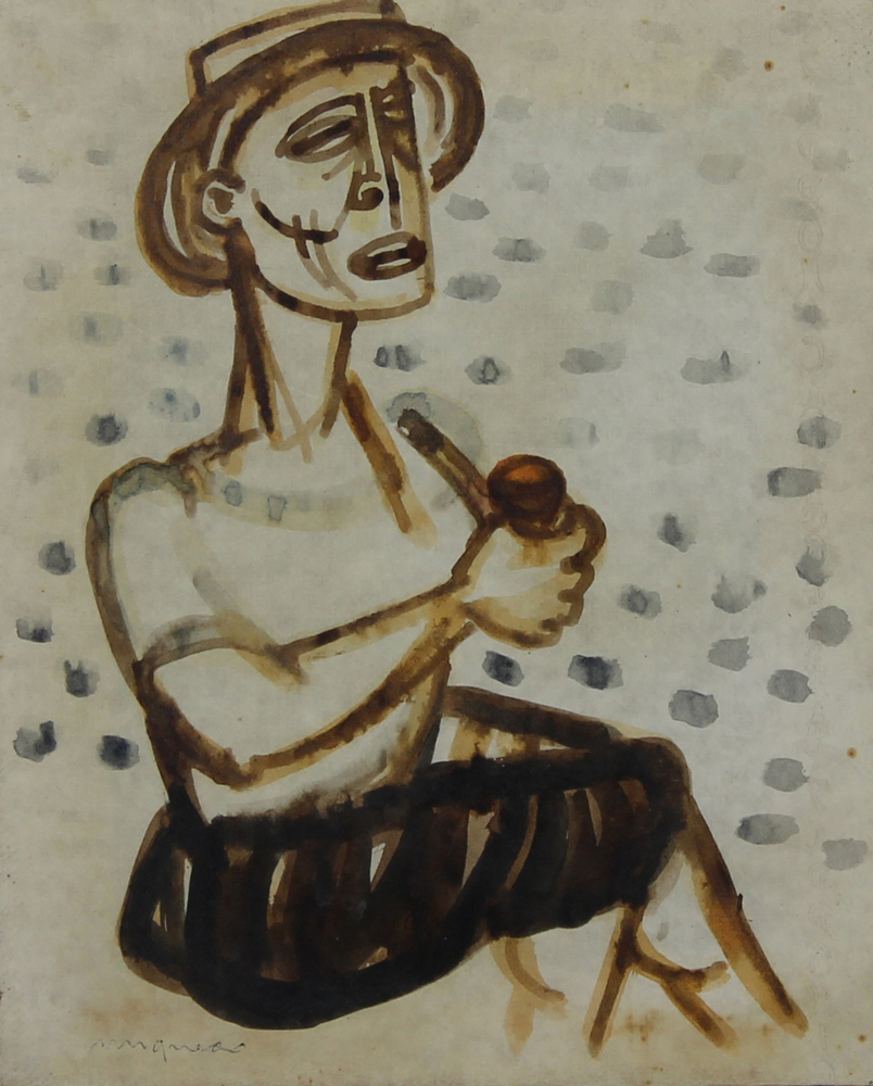 Giuseppe Migneco, Senza titolo, tecnica mista su carta applicata su tela, cm. 27,5x22,5, firmata in basso a sinistra