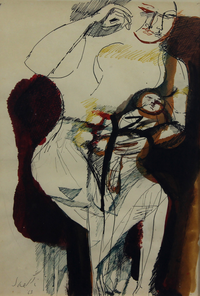 Bruno Saetti, Senza titolo, 1963, tecnica mista su carta, cm. 51x35, firmata e datata in basso a sinistra, certificato su fotografia della galleria Il Castello di Adria