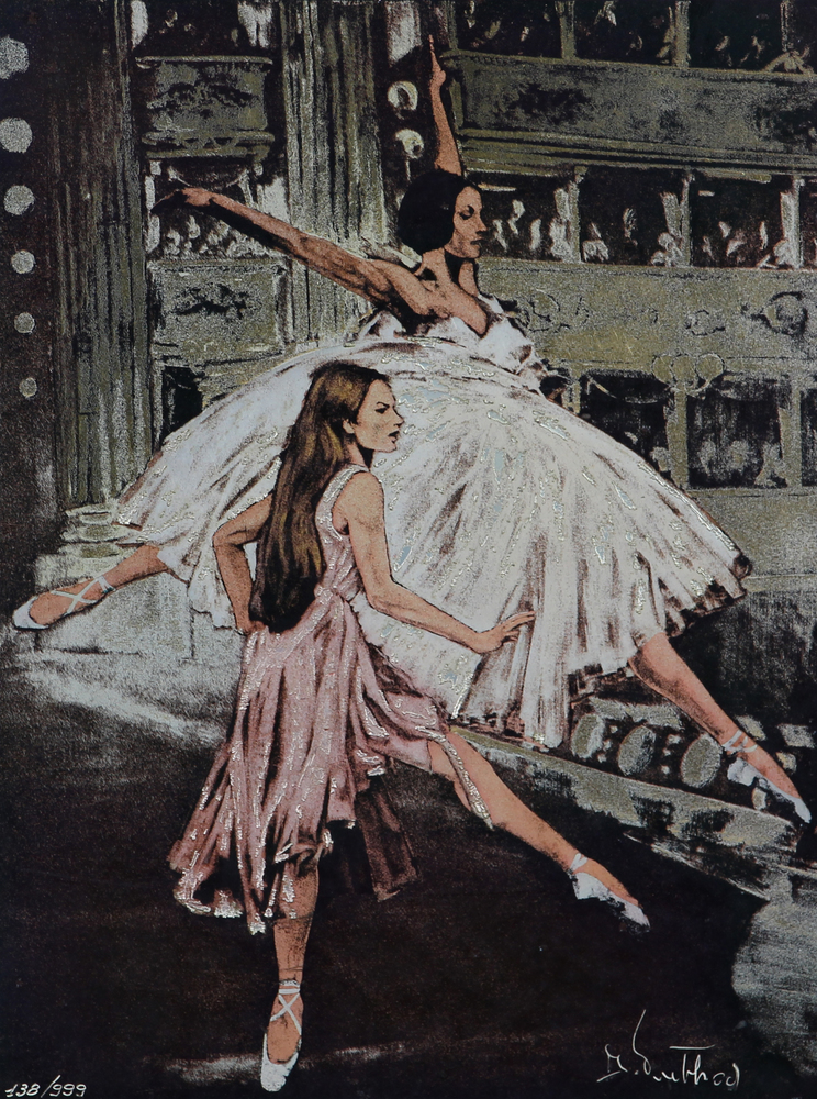 Dolores Puthod, Omaggio a Carla Fracci, multiplo su lastra in argento 800 tratto dall'opera originale e realizzato mediante incisioni e riporti a spessore di sottili lamine di differenti metalli nobili, cm. 24x18, es. 138/999, firma incisa in basso a destra, etichetta per certificazione di garanzia della Wenk con firma dell'artista datata 07/04/79 al retro
