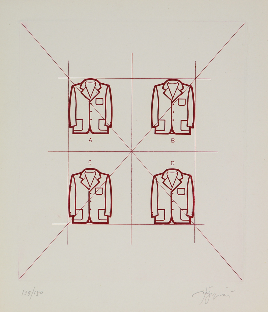 Tino Stefanoni, Giacche, 1970, incisione su carta, cm. 26,3x23,3 (lastra cm....