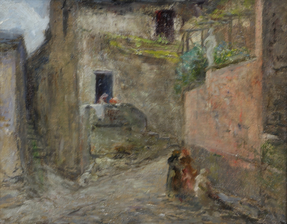 Stefano Bersani, Scorcio di Paese, olio su tela, cm. 26x33, firmato in basso a sinistra