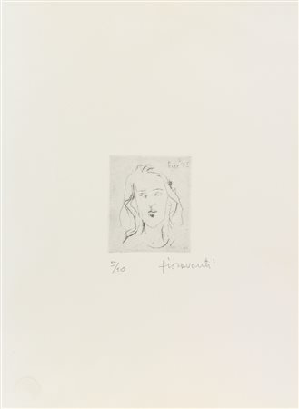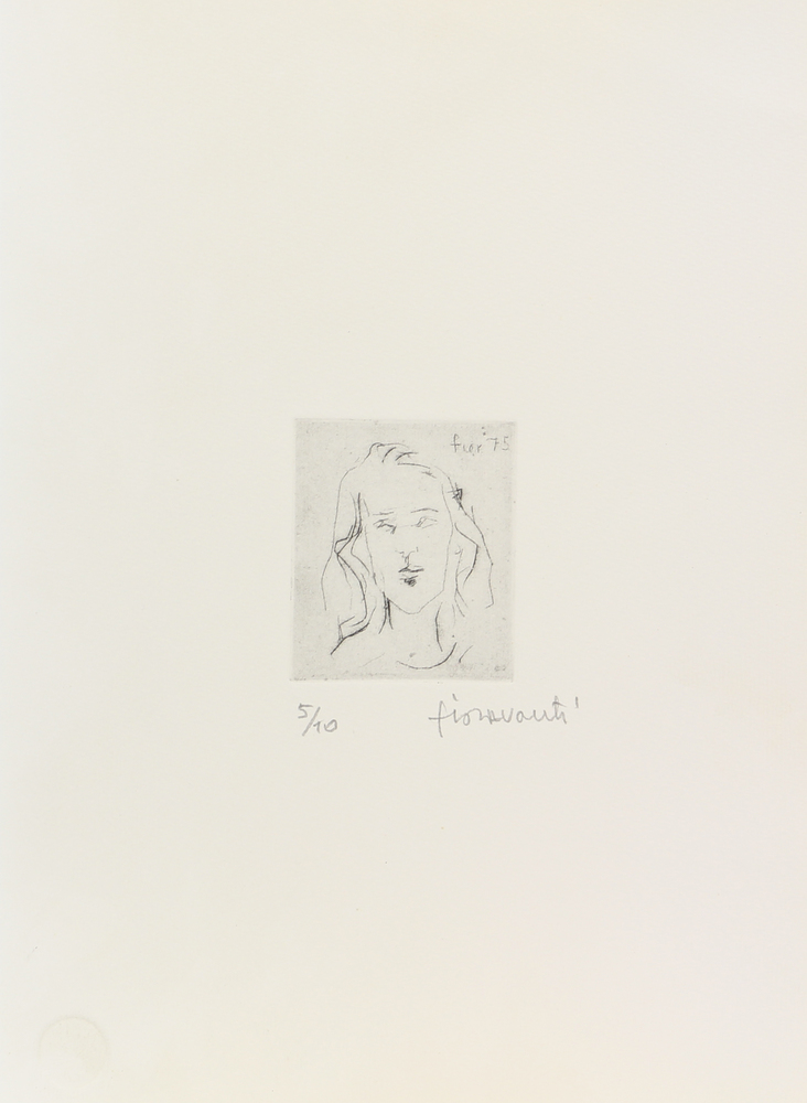 Ilario Fioravanti, Senza titolo, 1975, puntasecca su carta, cm. 35x25 (lastra cm. 8x6,5), es. 5/10, firmata in basso a destra, firmata e datata in lastra in alto a destra, timbro a secco "IMP GG" in basso a sinistra, senza cornice