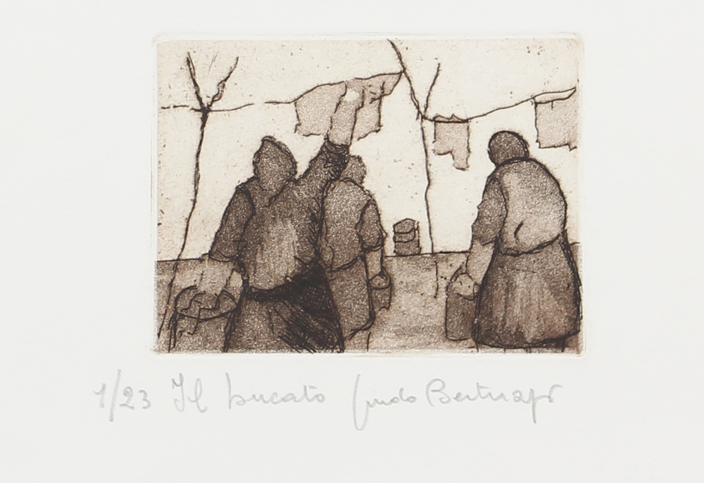 Guido Bertuzzi, Il Bucato, incisione su carta, cm. 35x50 (lastra cm....