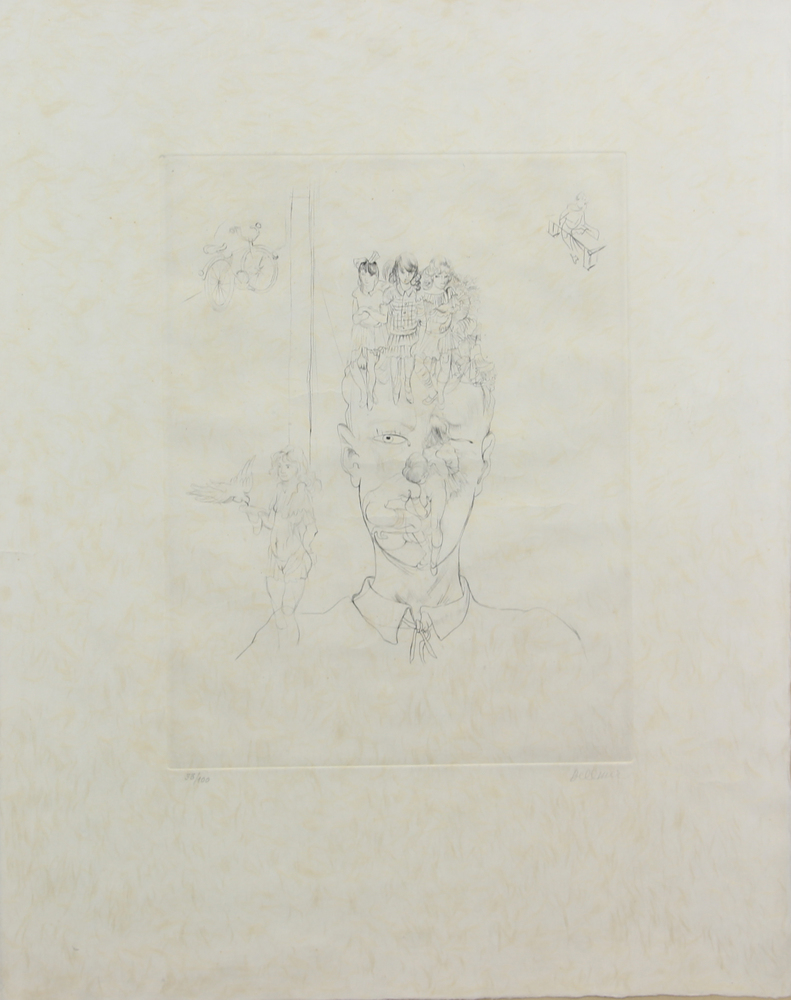 Hans Bellmer, Senza titolo, incisione su carta di riso, cm. 65x50 (lastra cm....