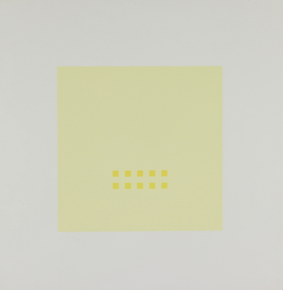 Antonio Calderara, Quadrato, 1974, serigrafia su carta, cm. 49,5x49,5, es. 90/99, siglata in basso a sinistra"