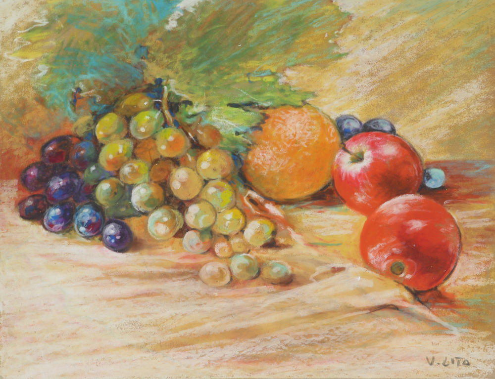 Vittorio Lita, Natura Morta, pastelli su carta velluto, cm. 25,5x33, firmato in basso a destra e al retro, senza cornice