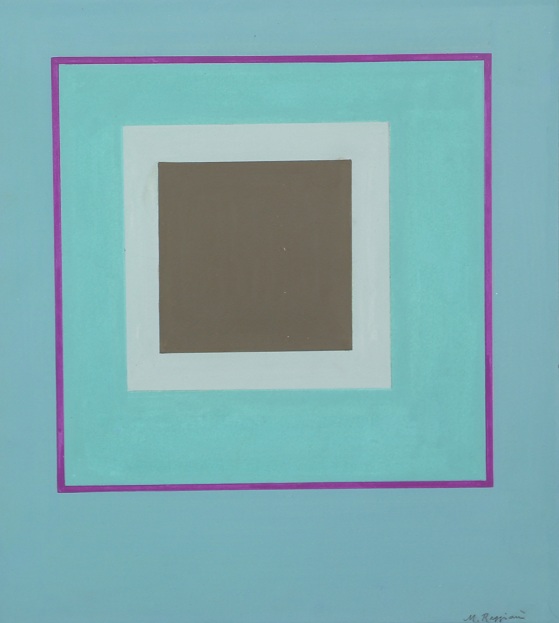 Reggiani Mauro, Senza titolo, tempera su carta applicata su tela, cm. 32x28, firmata in basso a destra, timbro "Galliata Arte Contemporanea di Alassio" al retro della cornice