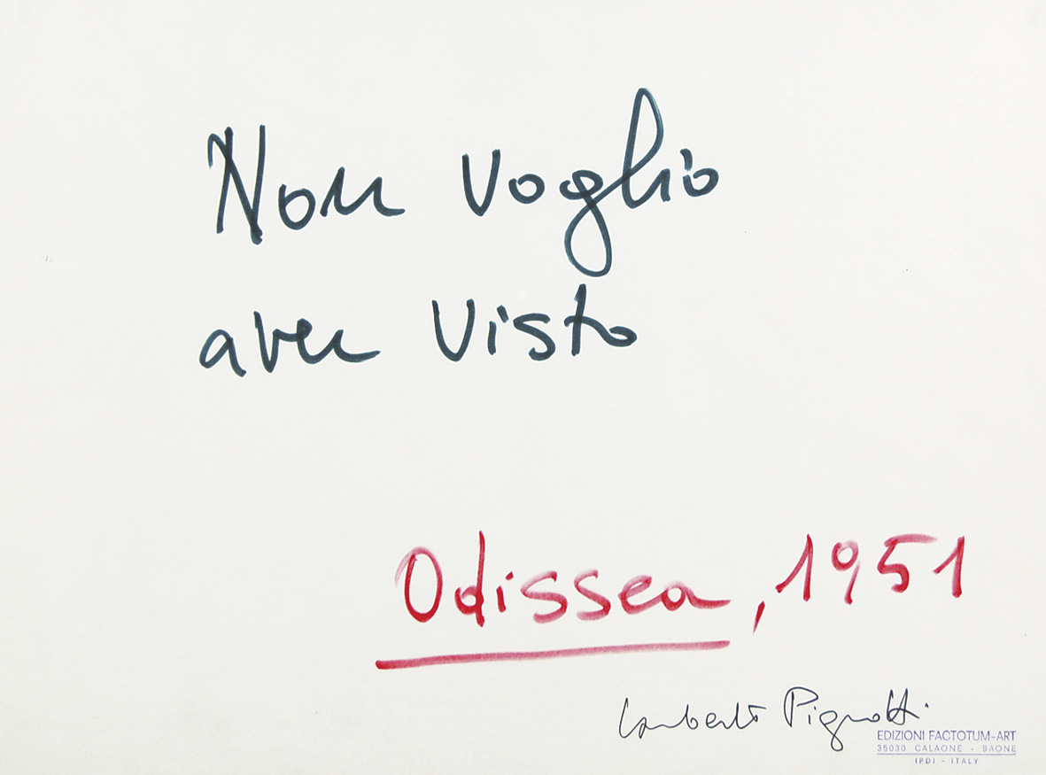 PIGNOTTI LAMBERTO Firenze 1926 Odissea tecnica mista su carta 33x44 firma e titolo in basso "Per parole e immagini tra poesia visiva ed espressioni segniche" Magi Museo d'Arte Pieve di Cento 2007 a cura di Vittoria Coen e relativa pubblicazione a pag. 76 edizioni Factotum-Art Padova in basso a destra