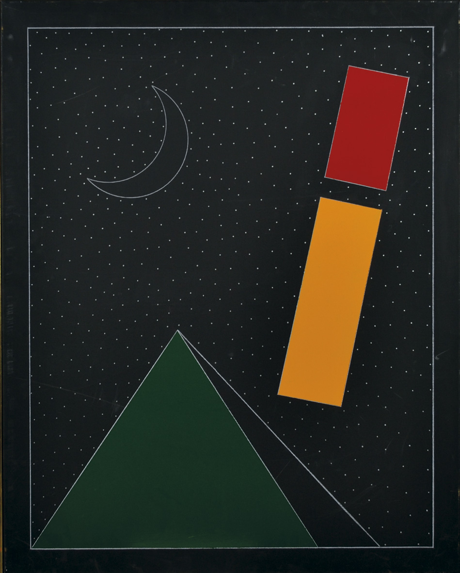 ANGELI FRANCO Roma 1935 -1988 Elementi smalti su tela 100x80 firma e titolo al retro Autentica dell'Archivio Franco Angeli e dell'Arch.per la Monografia "Franco Angeli 10 mercanti un Artista" a cura di F. Gallo e A. Calestani nr. P.P.341 su foto Livio Collina Bologna