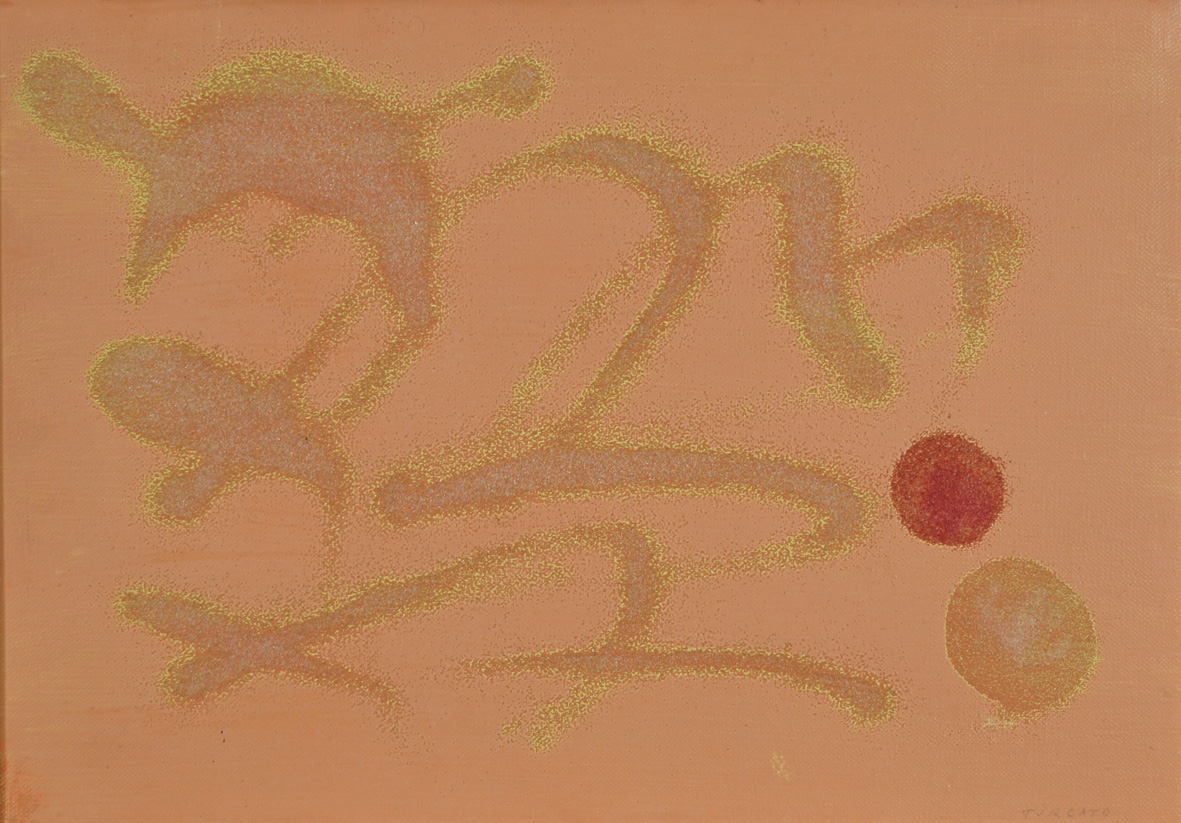 TURCATO GIULIO Mantova 1912 - Roma 1995 Saturno olio e tecnica mista su tela 35x50 firma in basso a destra titolo al retro opera archiviata presso l'Archivio Giulio Turcato a cura di Ettore Caruso nr. Rep. D27562138123
