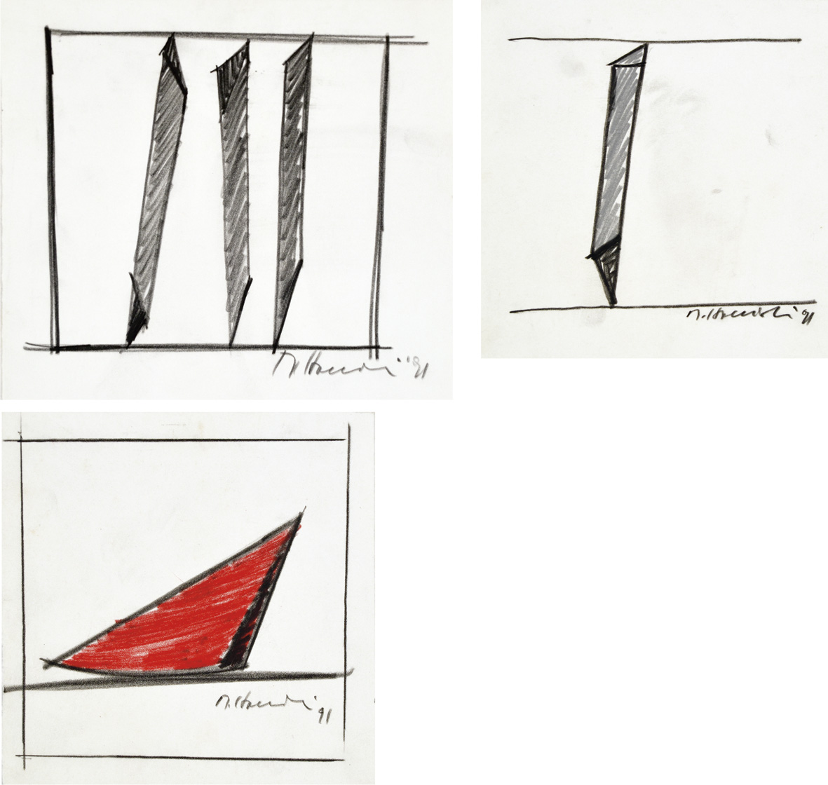 STACCIOLI MAURO Volterra 1937 senza titolo 1991 lotto di 3 tecniche miste su...