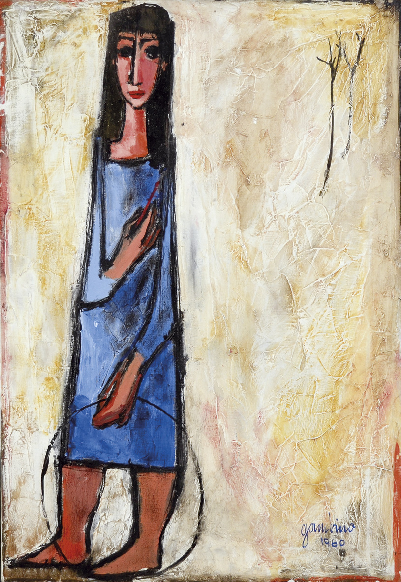 GAMBINO GIUSEPPE Vizzini 1928 - Preganziol (Tv) 1997 Bambina col cerchio 1960 olio su tela 65x45 firma e data in basso a destra firma data e titolo al retro Bibliografia: Catalogo Generale dell'opera "Giuseppe Gambino dipinti 1955-1995" Vol. II a cura di Ennio Pouchard pag. 63 tav. 33 EsposizionI: Galleria Luce Venezia - timbro al retro
