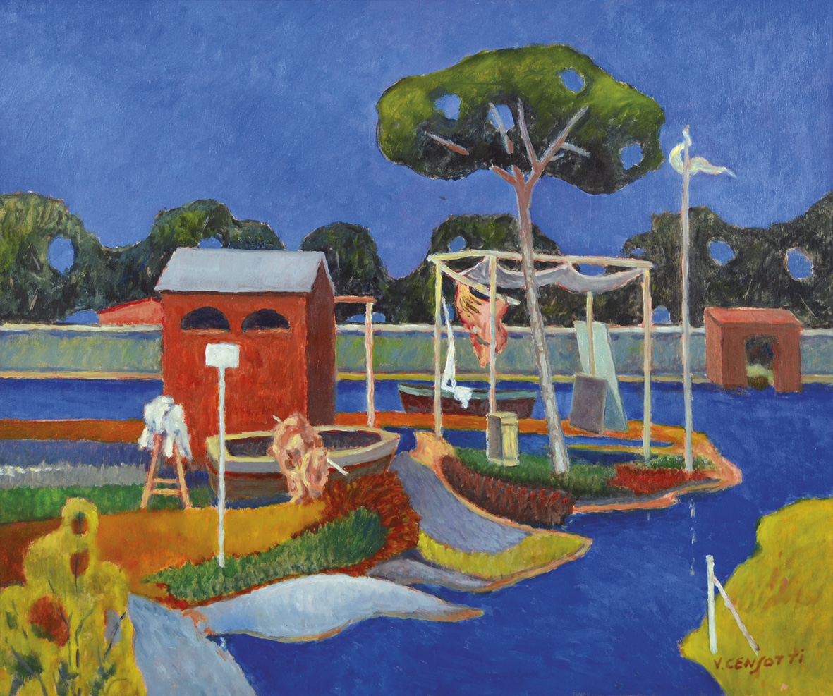CENSOTTI VINCENZO Foiano della Chiana 1913 - Treviso 2005 Paesaggio olio su tavola 50x60 firma in basso a destra timbro dell'Autore al retro