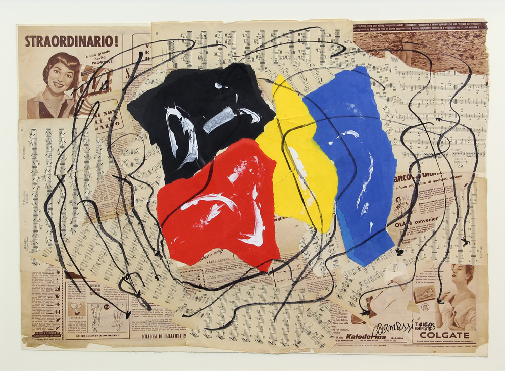 Arturo Carmassi, Senza titolo, 1983, tecnica mista e collage su cartoncino, cm. 52x72, firmata e datata in basso a destra, certificato di autenticità dell'artista su fotografia