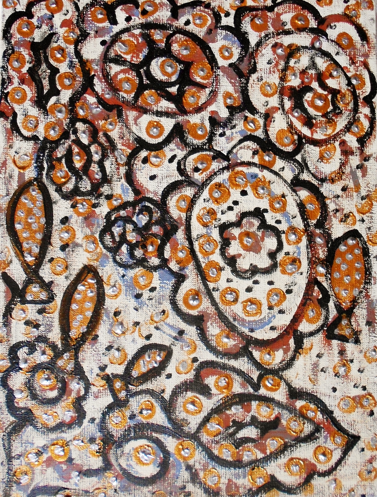 Patricia Del Monaco, Dal Ciclo "Tables of Life", 2015, tecnica mista su tela, cm. 40x30, foto autenticata dall'artista