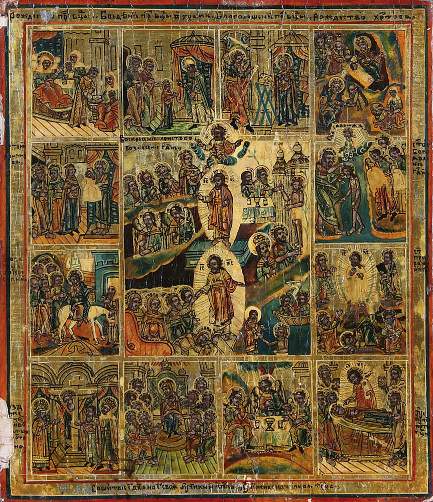 ICONA RUSSA DEL XIX SECOLO Dodici grandi festeTempera all'uovo su tavola, cm...