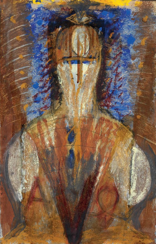 Bruno Ceccobelli Monte Castello Vibio (Pg) 1952 Sollievo in rilievo, 1988 Olio su carta, cm. 59,8x38,3 Data, titolo e firma al verso: 1988 / Sollievo / in rilievo / Bruno / Ceccobelli. Al verso, su un cartone di supporto: etichetta Galleria Anna d'Ascanio. Foto autenticata dall'artista in data 1989.