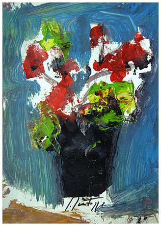 SERGIO SCATIZZI Gragnano 1918 - Firenze 2009 Aioni Olio su cartoncino 38 x 27,7. Firma in b. al c.; sul verso firma e titolo. Autentica dell’autore su foto. Base d'asta: 150