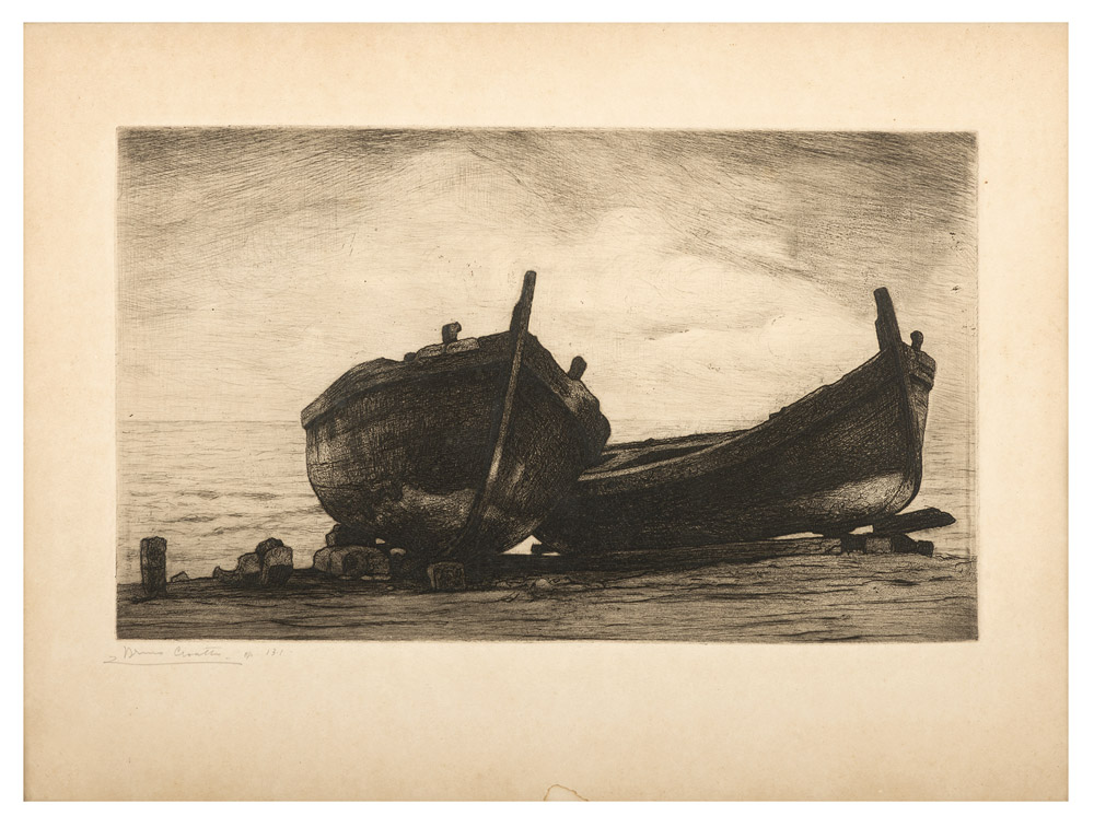 BRUNO CROATTO Trieste 1875 -1948 Barca Acquaforte Misure del foglio cm 35 x 45 Misure della lastra cm 21 x 36 Firma in basso a sinistra