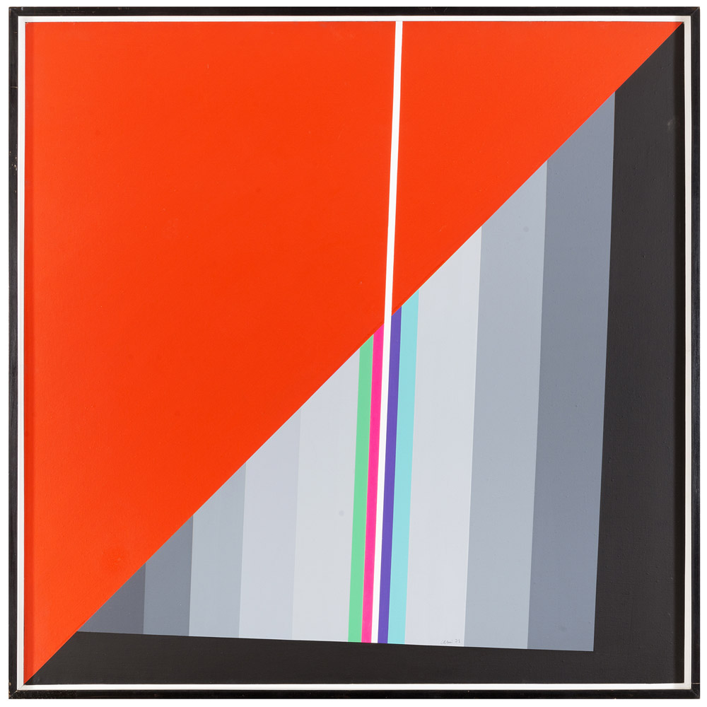 EUGENIO CARMI Genova, 17 febbraio 1920 Situazione immaginaria 1973 Acrilico su tela cm 100 x 100 Firma e data in basso al centro verso destra Timbro dell'artista al retro Esposizioni Studio F22-Palazzolo sull'Oglio, 1985-86, timbro al retro