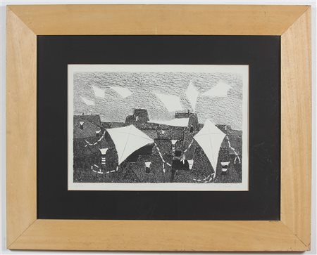 VALENTI ITALO (1912 - 1995) Senza titolo. 1954. Litografia. Cm 32,00 x 47,00. 40/65. Tiratura, firma e anno a matita in basso. Cornice presente