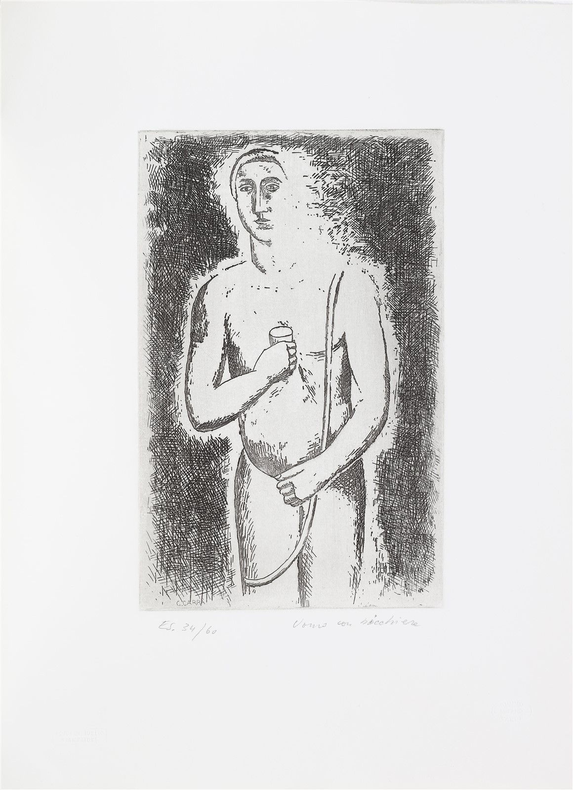 CARRA' CARLO (1881 - 1966) Uomo con bicchiere. Acquaforte. Cm 35,00 x 50,00....