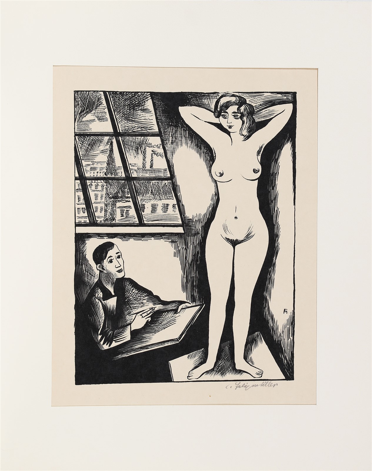 VON MULLER FELIX (1904 - 1997) Pittore e modella. 1927. Litografia. Cm 24,00 x 35,00. Firma a matita in basso a destra. Pubblicazione: Sohn Tav. 374