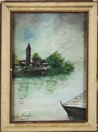 NICOLINI ALDO (n. 1934) S. Luigi. Olio su cartone pressato. Cm 18,00 x 25,00. Firma e titolo in basso. Cornice presente