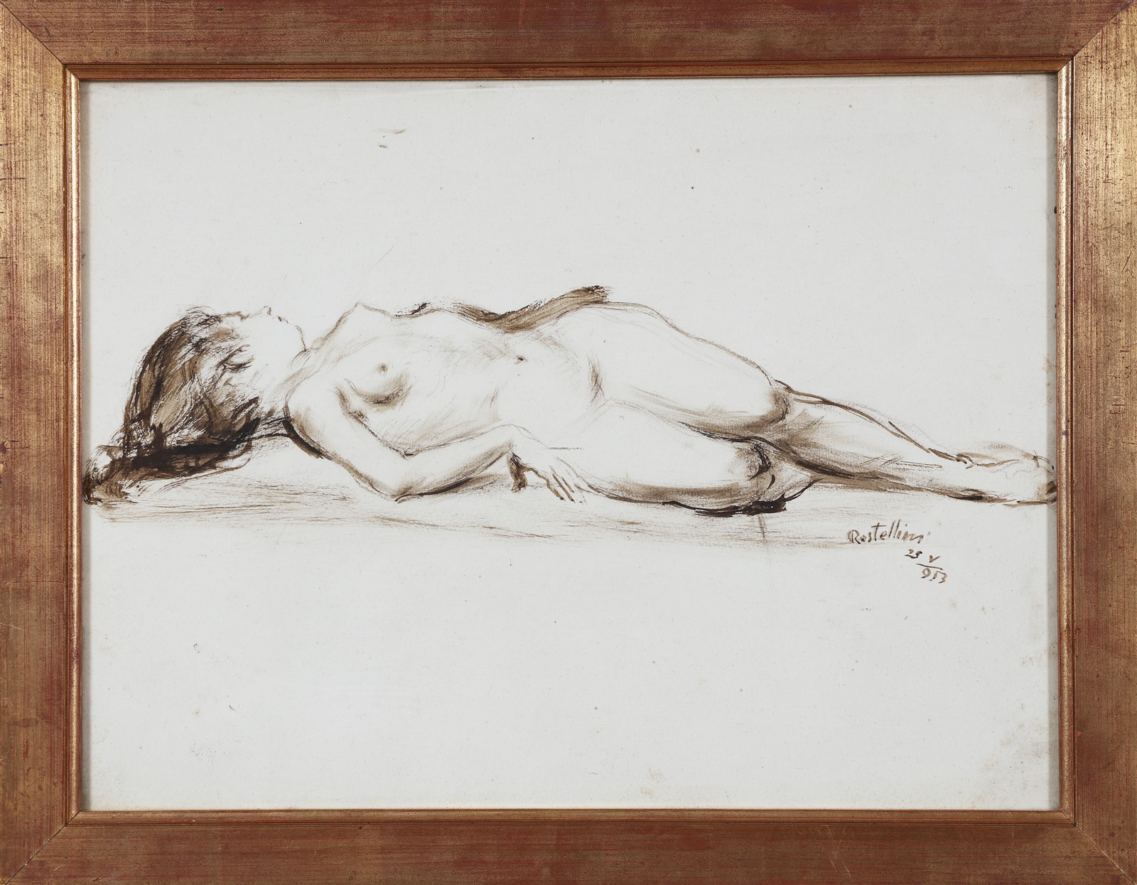 RESTELLINI GIAN PIETRO (1895 - 1978) Nudo femminile. 1925. Tecnica mista su carta. Cm 45,00 x 34,00. Firma e anno in basso a destra. Cornice presente