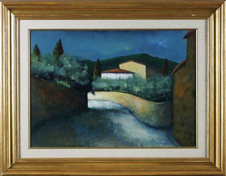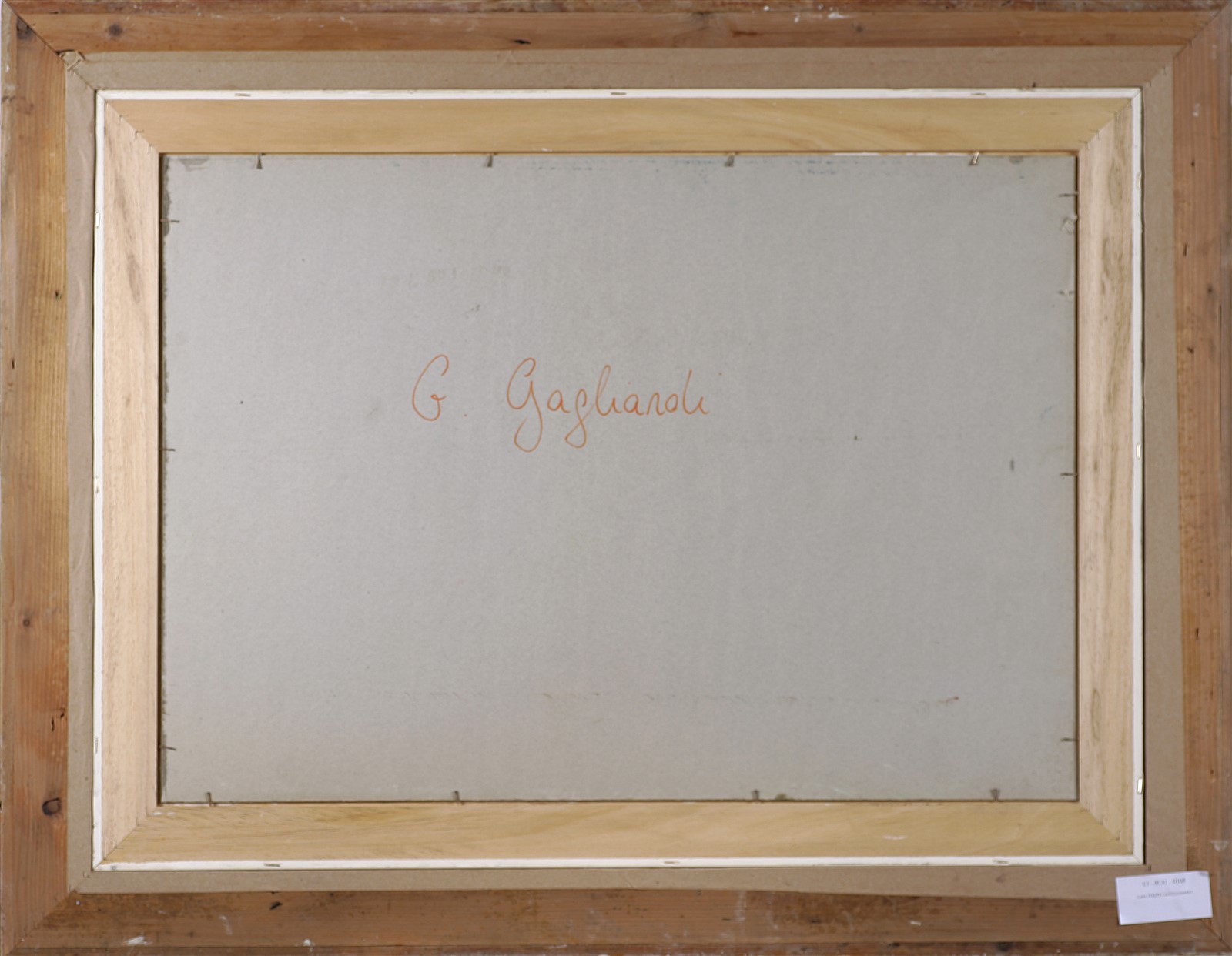 GAGLIARDI GIUSEPPE (n. 1896) Senza titolo. Olio su cartone. Cm 70,00 x 50,00. Firma in basso a destra. Al retro firma. Cornice presente