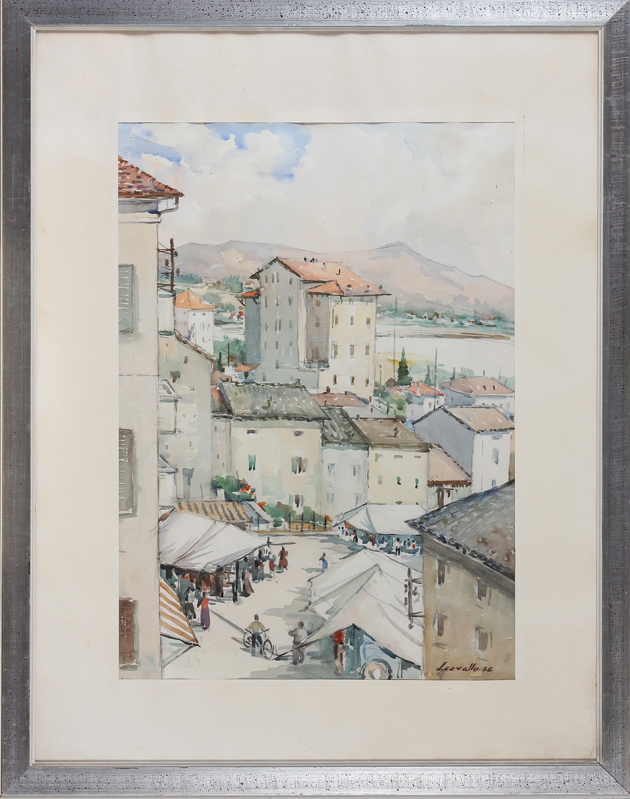 CAVALLO STEFANO (1913 - 1997) Paesaggio lacustre. Acquarello su carta. Cm 70,00 x 50,00. Firma in basso a destra. Cornice presente