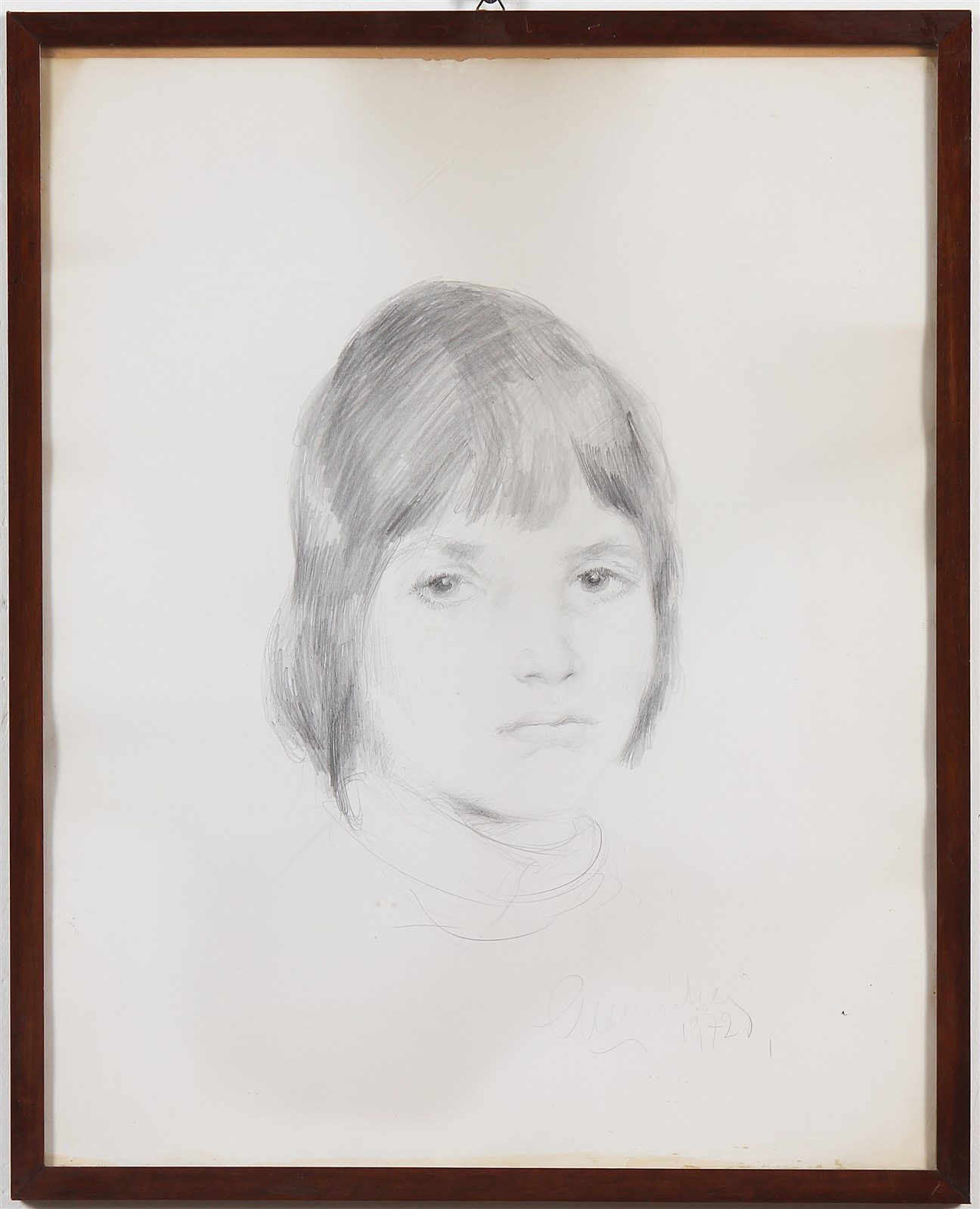 MUSITELLI GIULIO VITO (1901 - 1990) Volto. 1972. Disegno grafite su carta. Cm 40,00 x 50,00. Firma e anno in basso a destra. Cornice presente