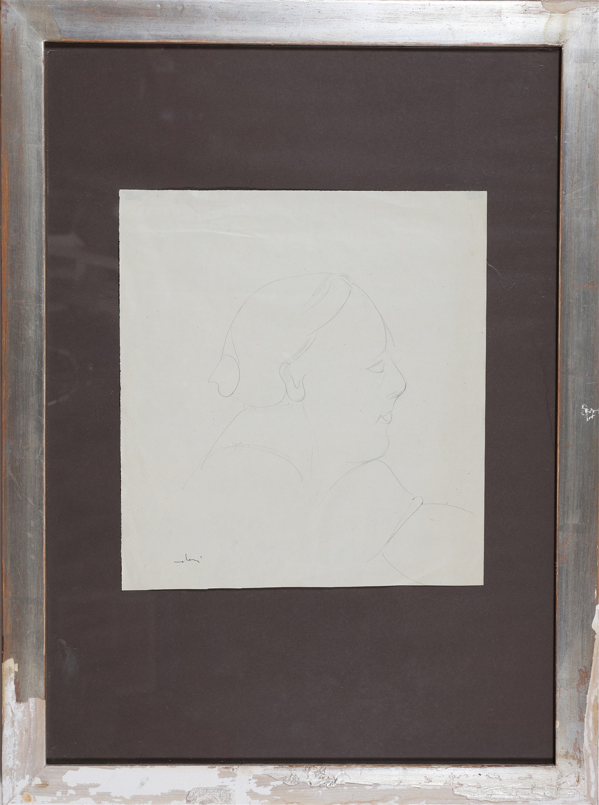 MELONI GINO (1905 - 1989) Volto maschile. Matita su carta. Cm 35,00 x 38,00. Firma in basso a sinistra. Cornice presente