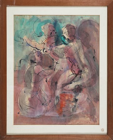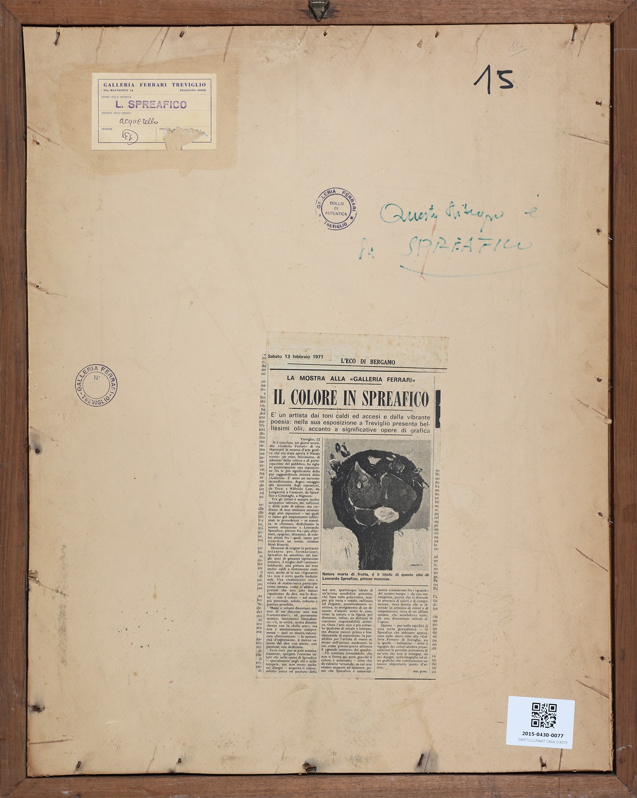 SPREAFICO LEONARDO (1907 - 1974) Senza titolo. Tecnica mista su carta. Cm 40,00 x 50,00. Al retro firma e cartiglio descrittivo a cura della Galleria Ferrari, Treviglio. Cornice presente