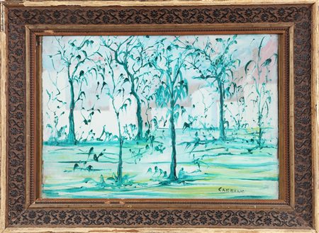 CARRINO GIUSEPPE (1910 - 1983) Paesaggio. Olio su cartone pressato. Cm 39,00 x 28,00. Firma in basso a destra. Cornice presente