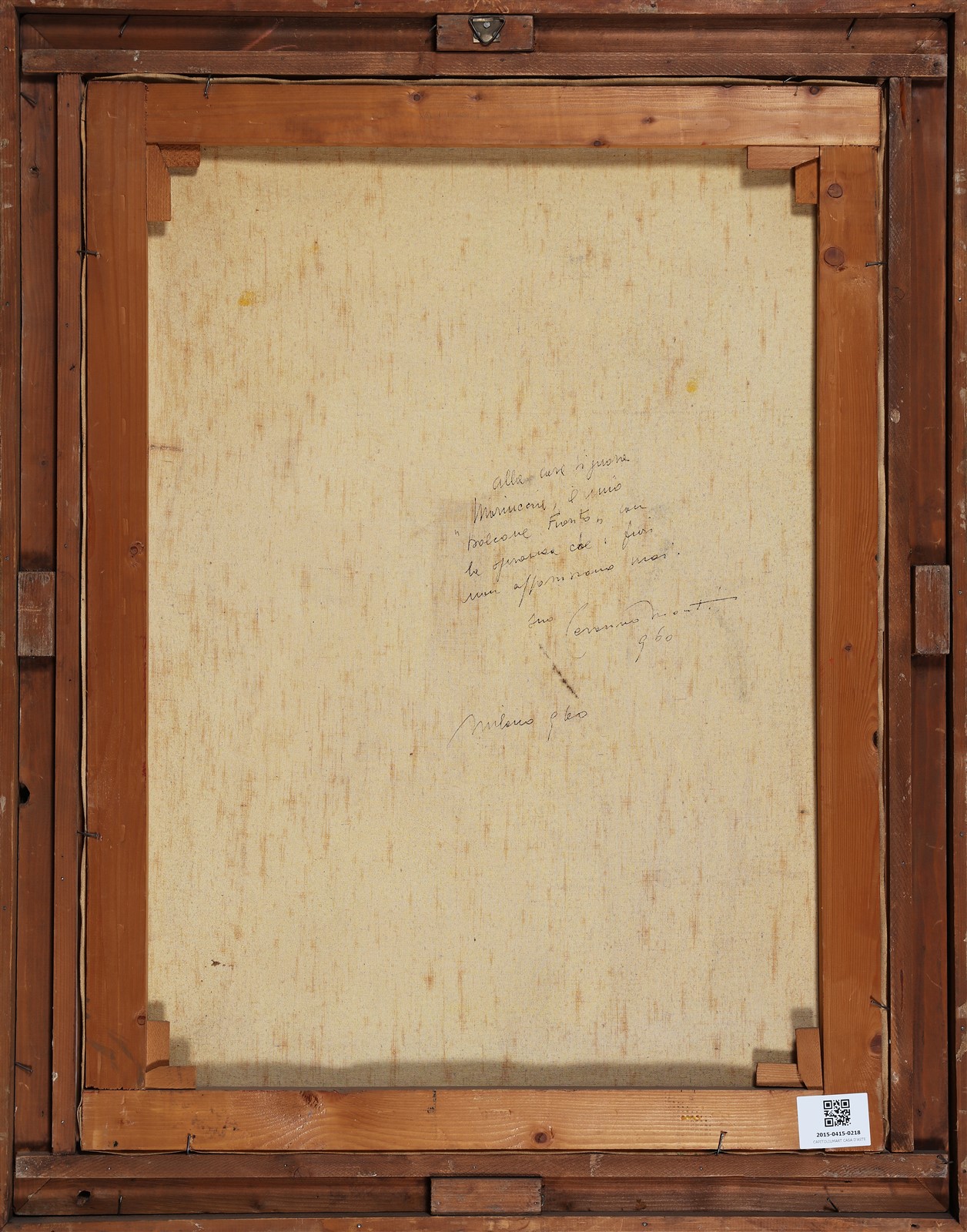MONTI CESARINO (1916 - 1979) Il mio balcone fiorito. Olio su tela . Cm 60,00 x 80,00. Firma e dedica al retro. Cornice presente