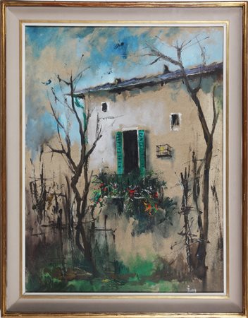 MONTI CESARINO (1916 - 1979) Il mio balcone fiorito. Olio su tela . Cm 60,00...