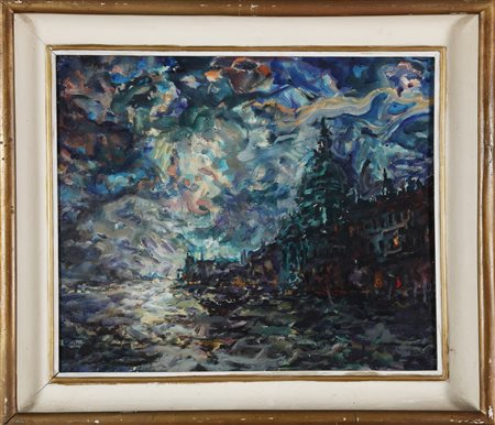 SATURNINO Senza titolo. Olio su tela . Cm 60,00 x 50,00. Al retro dedica con...