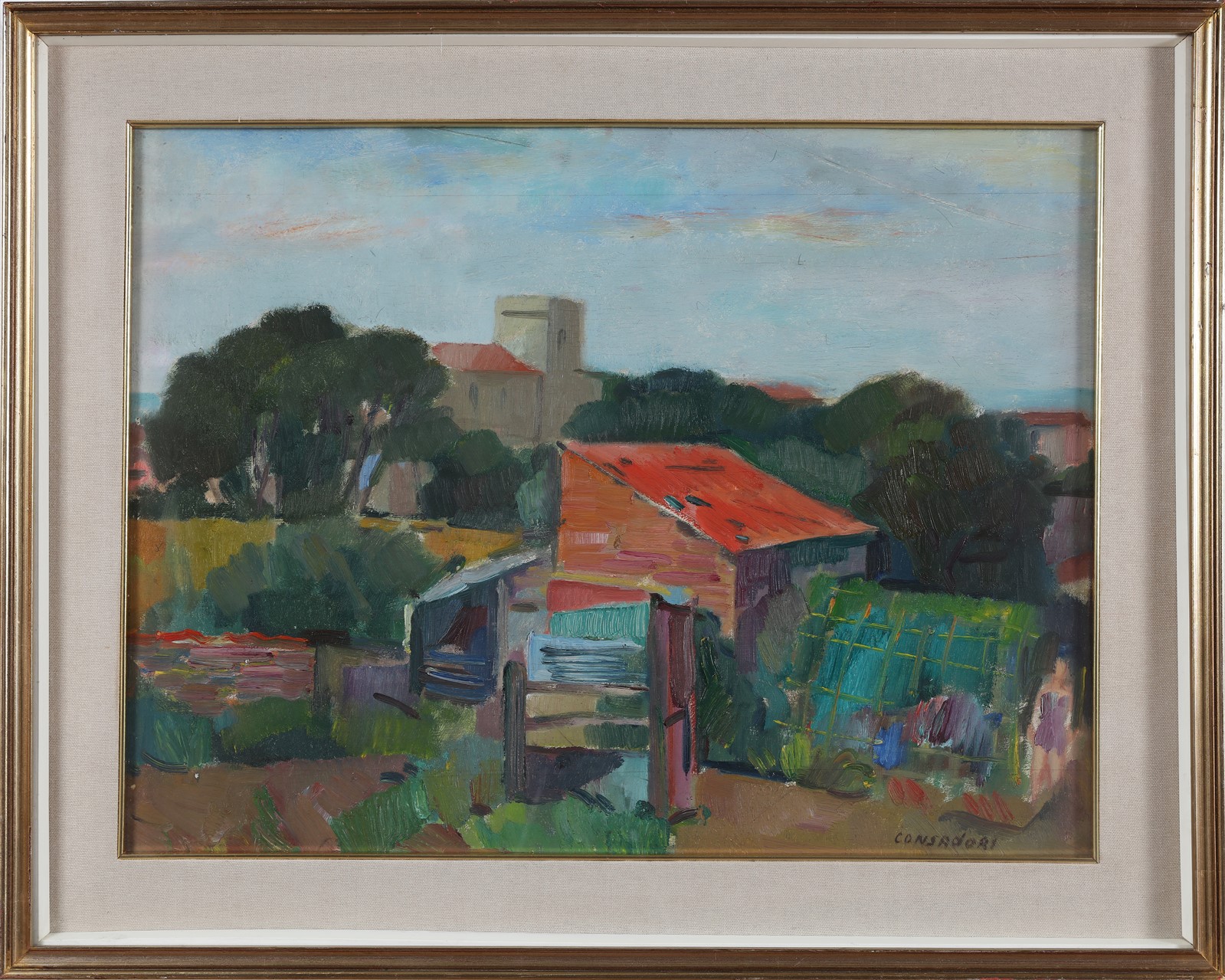 CONSADORI SILVIO (1909 - 1994) Paesaggio. Olio su tavola. Cm 61,00 x 47,00. Firma in basso a destra. Cornice presente