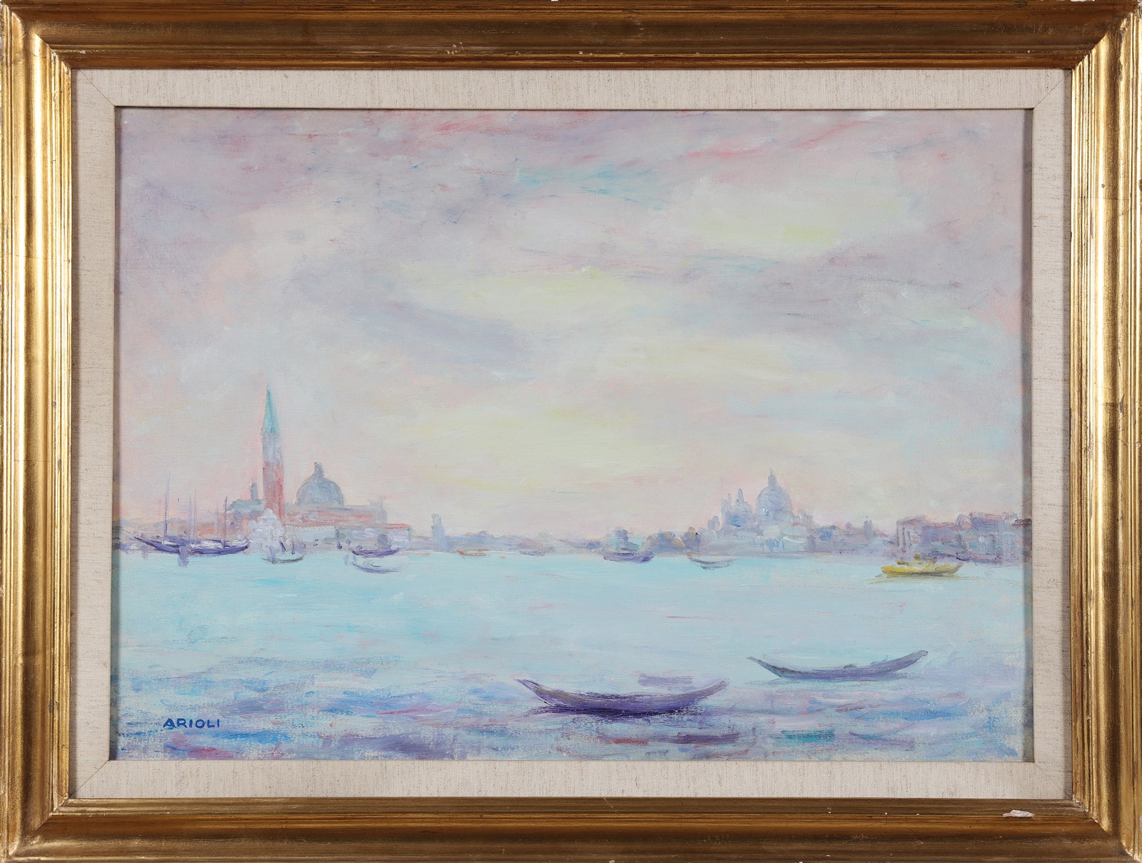 FIORAVANTE ARIOLI (1890 - 1980) Venezia. Olio su tela. Cm 70,00 x 50,00. Firma in basso a sinistra. Al retro: cartiglio biografico. Cornice presente