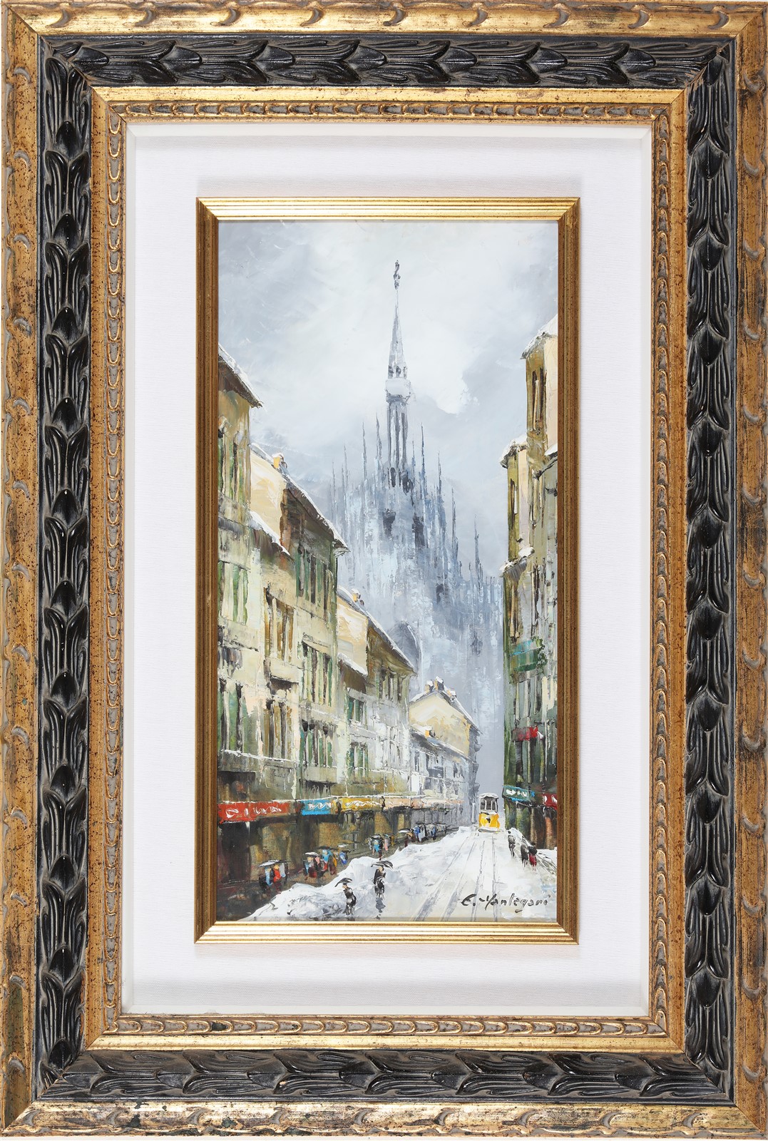 MANTEGANI EUGENIO (1929 - 2005) Milano. Olio su tela. Cm 25,00 x 50,00. Firma in basso a destra. Autentica dell'artista su fotografia. Cornice presente