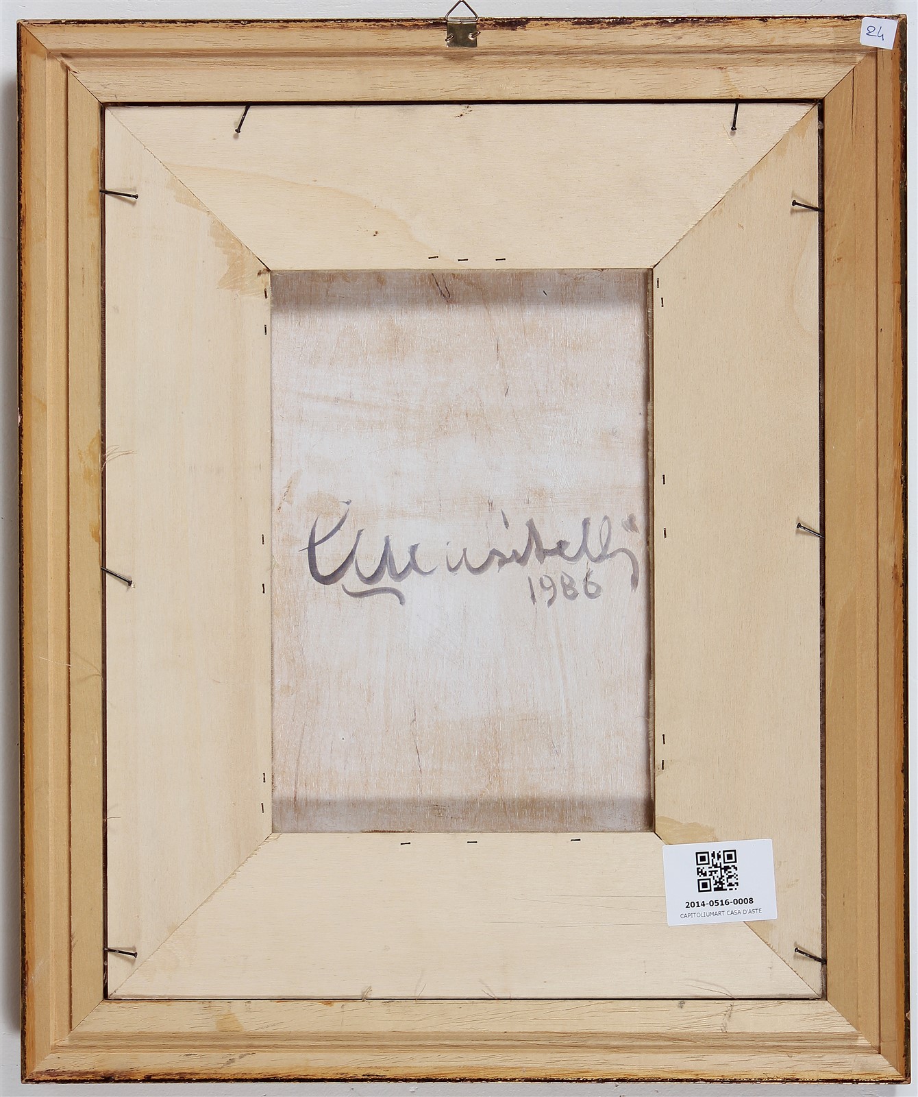 MUSITELLI GIULIO VITO (1901 - 1990) Senza titolo. 1986. Olio su tavola. Cm 20,00 x 30,00. Firma e anno in basso a sinistra. Al retro firma e anno. Cornice presente