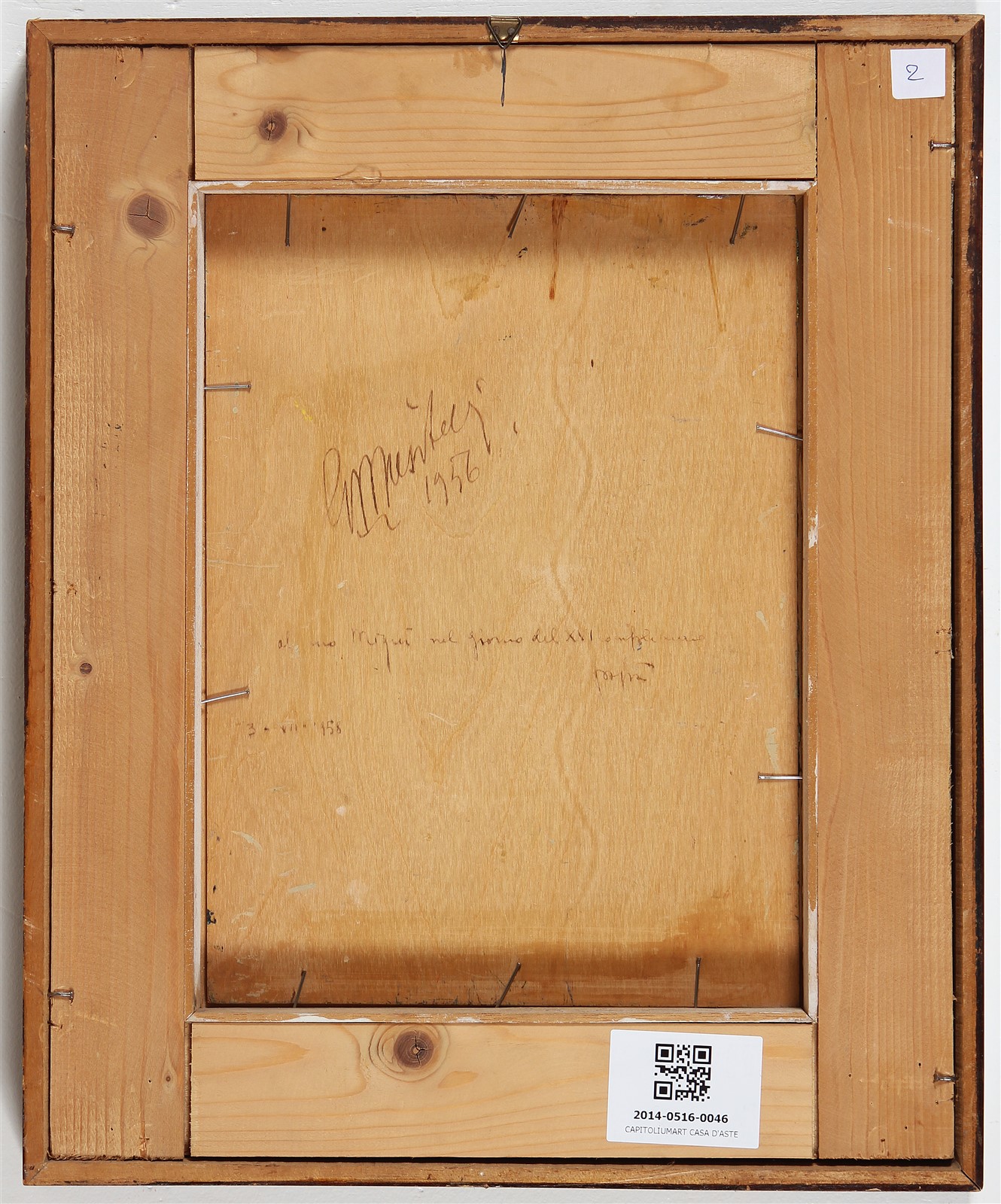 MUSITELLI GIULIO VITO (1901 - 1990) Senza titolo. 1956. Olio su compensato. Cm 20,00 x 28,00. Firma, dedica, anno al retro. Cornice presente