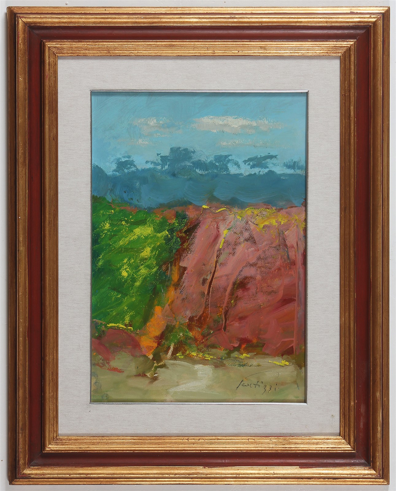 SCATIZZI SERGIO (1918 - 2009) Senza titolo. Olio su compensato. Cm 35,00 x 50,00. Firma in basso a destra. Autentica dell'artista su fotografia. Cornice presente