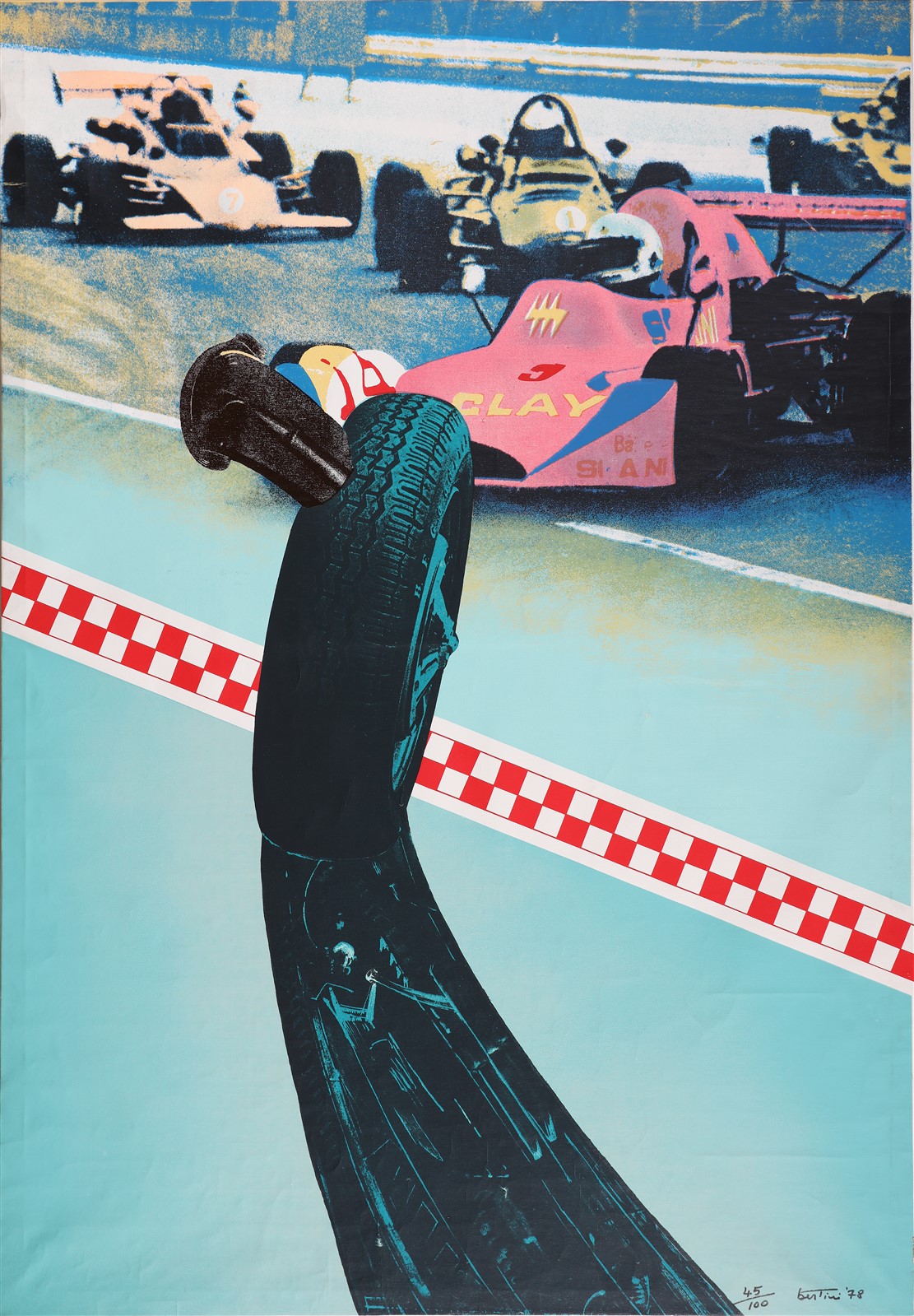 BERTINI GIANNI (1922 - 2010) Senza titolo. 1978. Serigrafia su tela. Cm 97,00 x 138,00. 45/100. Tiratura, firma e anno in basso a destra. L'opera presenta una piccola mancanza di colore.