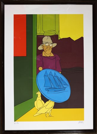 ADAMI VALERIO (n. 1935) Il sogno americano. Litografia. Cm 70,00 x 100,00. 43/150. Tiratura e firma in basso. Timbro a secco a cura di Edizioni Poleschi Arte, Lucca. Cornice presente