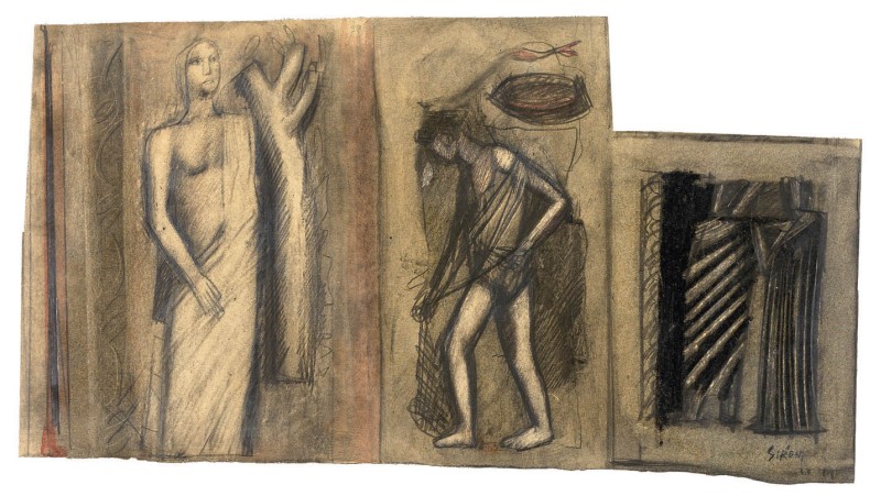Mario Sironi Sassari 1885 - Milano 1961 Figure, 1940 ca. Matita e tecnica mista su carta, cm. 23x42,7 Firma in basso a destra: Sironi. Certificato su foto di Francesco Meloni.