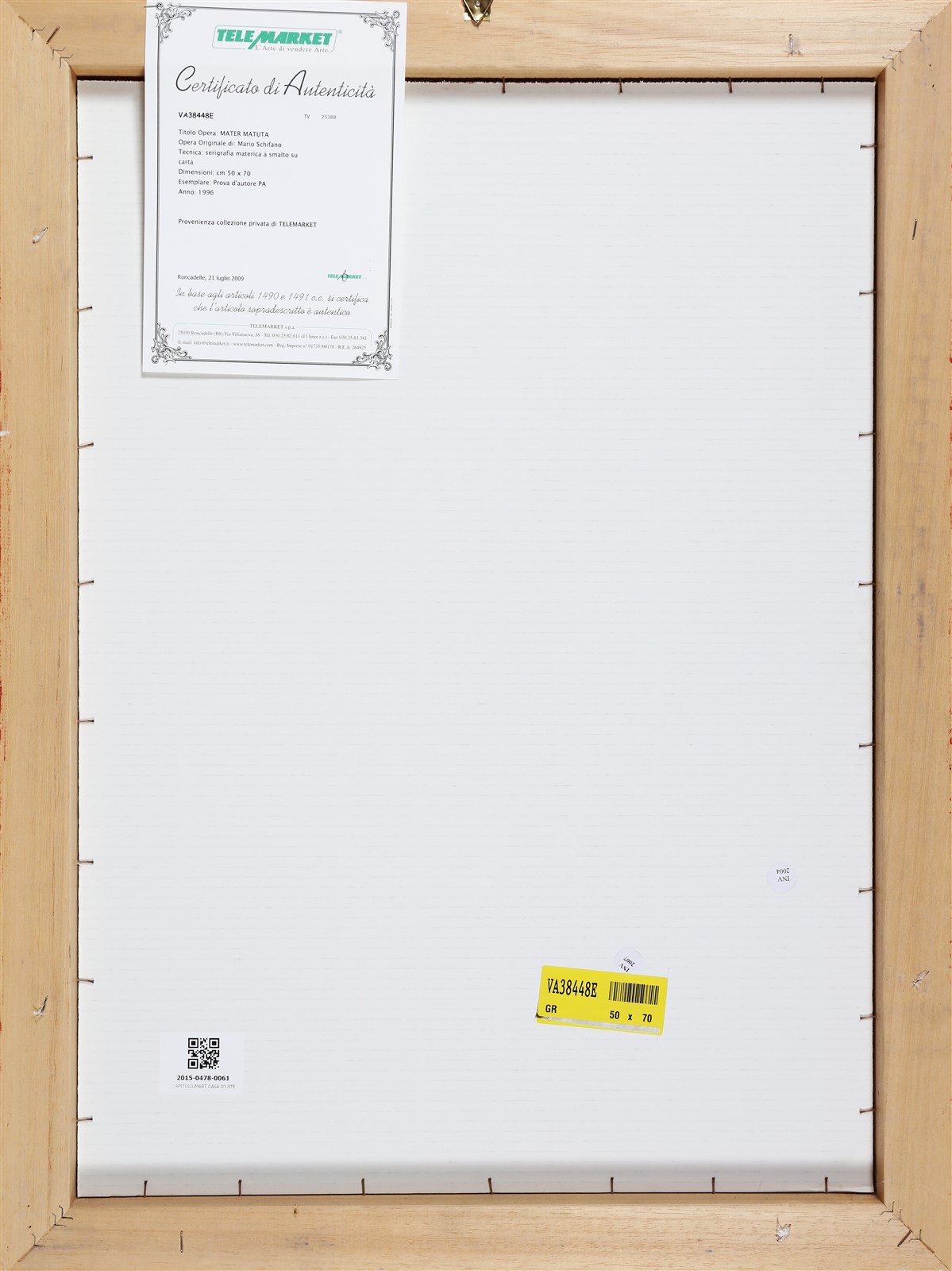 SCHIFANO MARIO (1934 - 1998) Mater matuta. 1996. Litografia. Cm 50,00 x 70,00. P.d.a. Tiratura e firma in basso a matita. Al retro Certificato di autenticità a cura di Telemarket, Roncadelle (Bs). Cornice presente