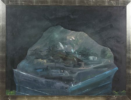 PIGNATELLI ERCOLE (n. 1935) Senza titolo. 1972. Olio su tela . Cm 120,00 x 90,00. Firma e anno in alto a destra. Cornice presente